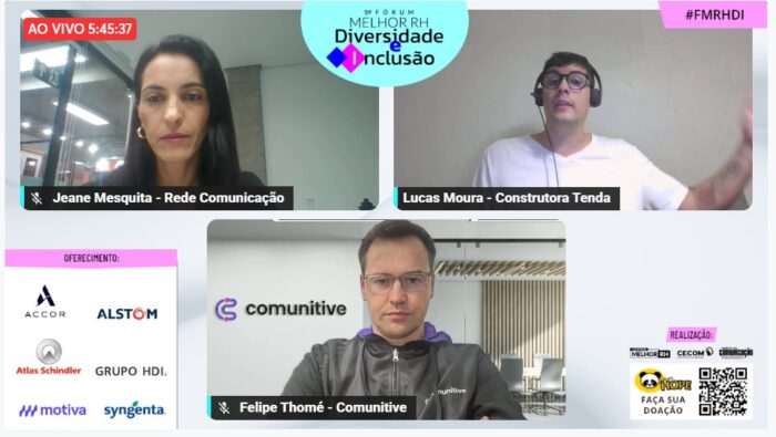 A discussão avançou para como a comunicação pode transversalizar diversidade e inclusão, evitando que fiquem restritas a campanhas pontuais. Jeanne enfatizou que “diversidade e inclusão, eu trato como a cultura, aquilo que se vive no dia a dia, o respeito que temos com as pessoas”. Já Lucas defendeu integrar sub-representados em fotos, rádios de obra e eventos como o Dia da Consciência Negra, enquanto Felipe Tom reforçou o papel da comunicação em conscientizar e reconhecer exemplos práticos.